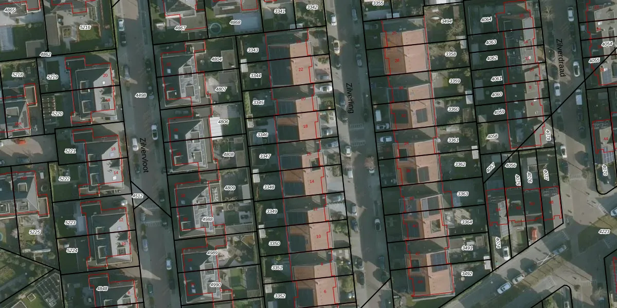 Gebruik de zoekbalk of klik op een perceel voor informatie over de adressen binnen dit perceel.
