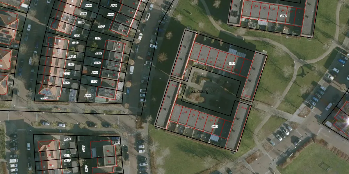 Zuidburg 67 is gelegen op kadastraal perceel RHO00B3043. Deze kadastrale aanduiding is uniek en wordt gebruikt door het Kadaster om eigendomsrechten en andere zakelijke rechten vast te leggen. Het perceel maakt onderdeel uit van de kadastrale gemeente Rhoon.