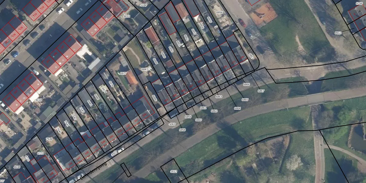 Benedenrijweg 165 is gelegen op kadastraal perceel RDK01A6849. Deze kadastrale aanduiding is uniek en wordt gebruikt door het Kadaster om eigendomsrechten en andere zakelijke rechten vast te leggen. Het perceel maakt onderdeel uit van de kadastrale gemeente Ridderkerk.