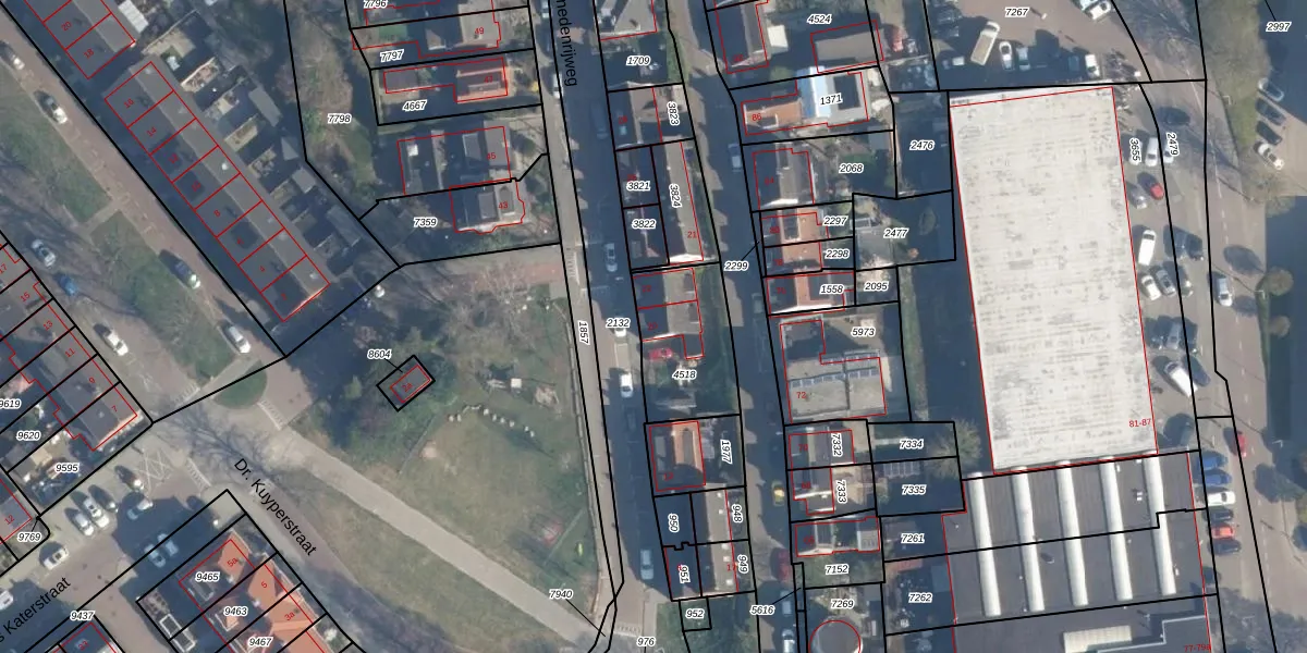 Het adres ligt op het perceel RDK01-H-4518, dat zich in de kadastrale gemeente Ridderkerk bevindt. Het perceel is 325 m² groot. Dat is kleiner dan de gemiddelde perceeloppervlakte in Ridderkerk, dat op 1570,98 m² ligt. Het grootste perceel in de kadastrale gemeente is 61,6 ha. Het kleinste perceel heeft een oppervlakte van 0 m². Op het perceel liggen in totaal 2 adressen. In de Basisregistratie Kadaster (BRK) werden de grenzen van het perceel geregistreerd op 12-12-2001.
