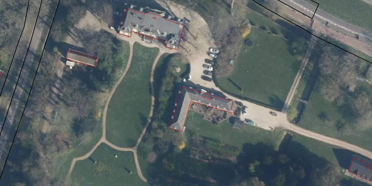 Het perceel waarop Benedenrijweg 459-b staat heeft een oppervlakte van 23,3 ha. Dit is een zeer groot perceel. De perceeloppervlakte wordt geregistreerd door het Kadaster. Gedetailleerde informatie over de maten van dit perceel kunt u vinden in het rapport Kadastrale kaart met maatvoering van Benedenrijweg 459-b.