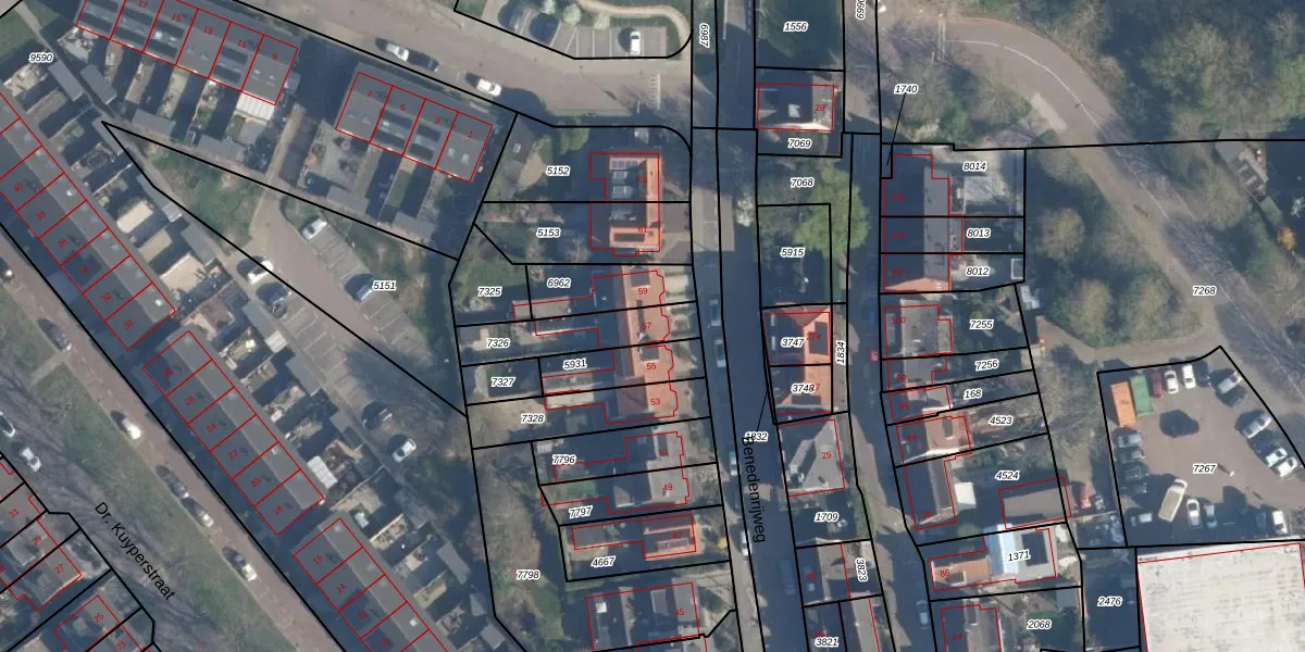 Benedenrijweg 57 is gelegen op kadastraal perceel RDK01A7326. Deze kadastrale aanduiding is uniek en wordt gebruikt door het Kadaster om eigendomsrechten en andere zakelijke rechten vast te leggen. Het perceel maakt onderdeel uit van de kadastrale gemeente Ridderkerk.