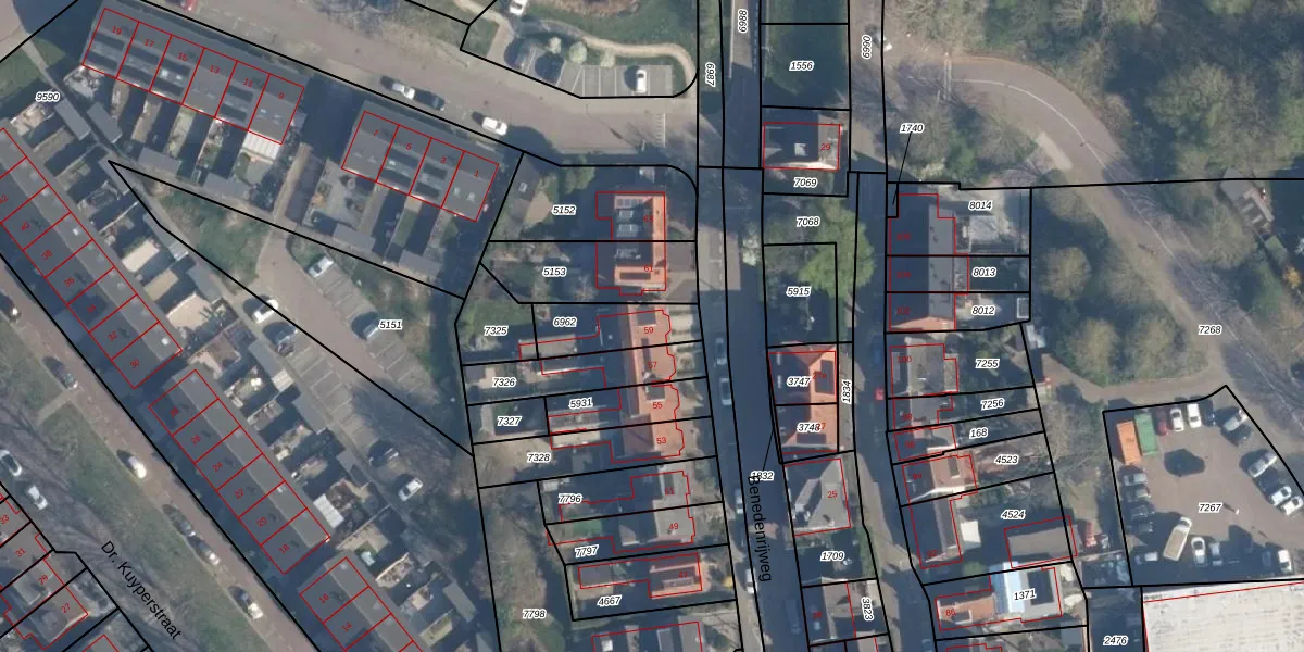 Benedenrijweg 59 is gelegen op kadastraal perceel RDK01A6962. Deze kadastrale aanduiding is uniek en wordt gebruikt door het Kadaster om eigendomsrechten en andere zakelijke rechten vast te leggen. Het perceel maakt onderdeel uit van de kadastrale gemeente Ridderkerk.