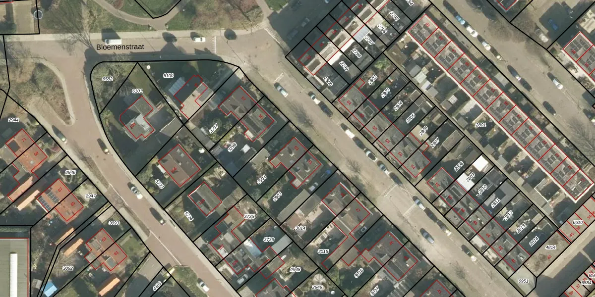 Het perceel waarop Bloemenstraat 53 staat heeft een oppervlakte van 310 m². Dit is een groot perceel. De perceeloppervlakte wordt geregistreerd door het Kadaster. Gedetailleerde informatie over de maten van dit perceel kunt u vinden in het rapport Kadastrale kaart met maatvoering van Bloemenstraat 53.