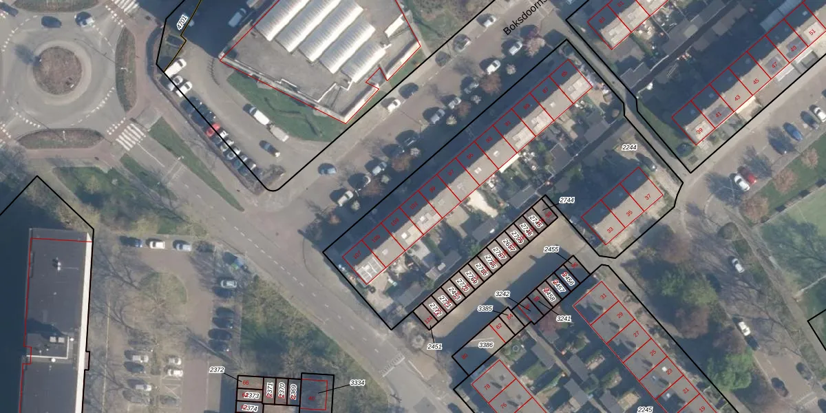 Het perceel waarop Boksdoornstraat 101 staat heeft een oppervlakte van 2558 m². Dit is een zeer groot perceel. De perceeloppervlakte wordt geregistreerd door het Kadaster. Gedetailleerde informatie over de maten van dit perceel kunt u vinden in het rapport Kadastrale kaart met maatvoering van Boksdoornstraat 101.