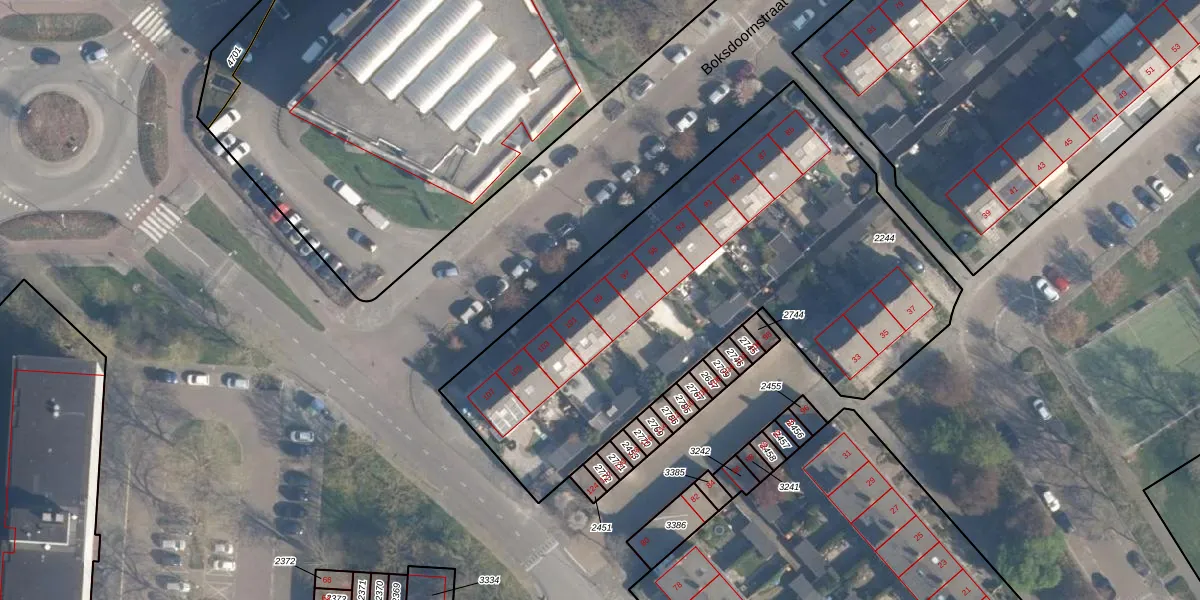 Het perceel waarop Boksdoornstraat 99 staat heeft een oppervlakte van 2558 m². Dit is een zeer groot perceel. De perceeloppervlakte wordt geregistreerd door het Kadaster. Gedetailleerde informatie over de maten van dit perceel kunt u vinden in het rapport Kadastrale kaart met maatvoering van Boksdoornstraat 99.