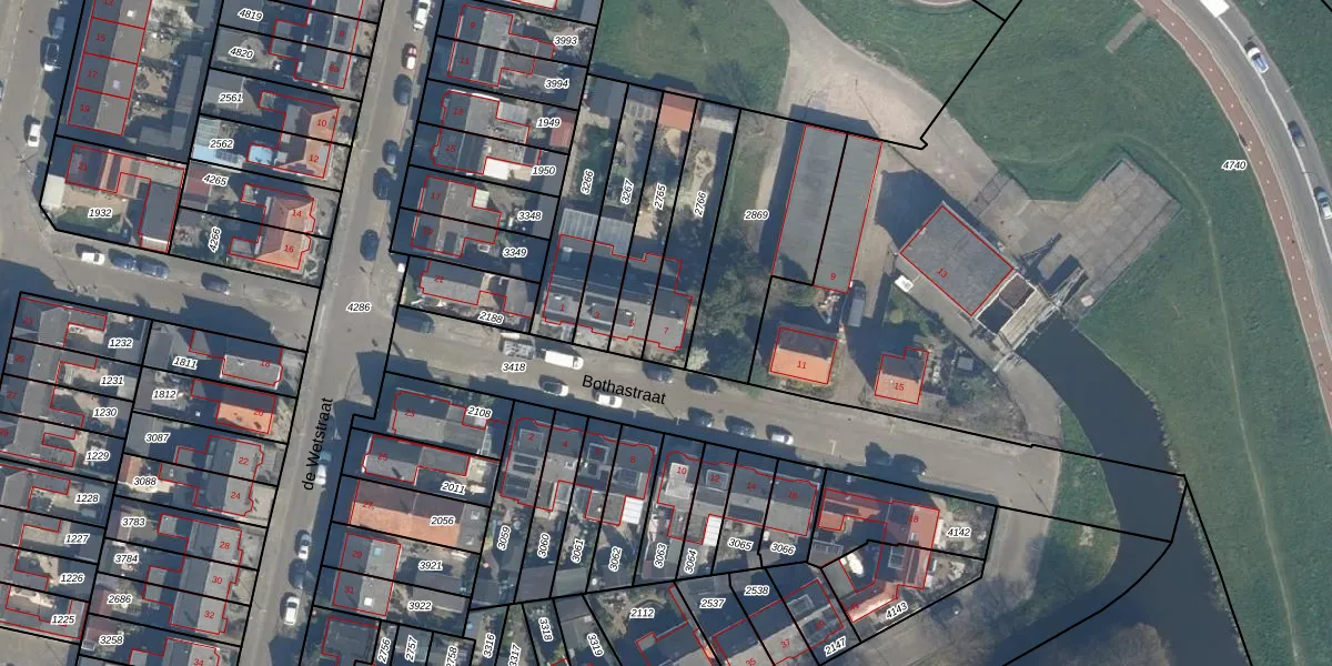 Bothastraat 7 is gelegen op kadastraal perceel RDK01G2766. Deze kadastrale aanduiding is uniek en wordt gebruikt door het Kadaster om eigendomsrechten en andere zakelijke rechten vast te leggen. Het perceel maakt onderdeel uit van de kadastrale gemeente Ridderkerk.