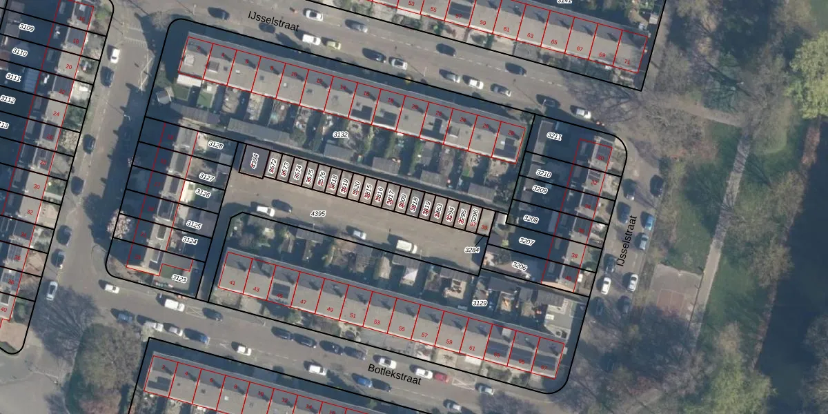 Het perceel waarop Botlekstraat 27 staat heeft een oppervlakte van 19 m². Dit is een klein perceel. De perceeloppervlakte wordt geregistreerd door het Kadaster. Gedetailleerde informatie over de maten van dit perceel kunt u vinden in het rapport Kadastrale kaart met maatvoering van Botlekstraat 27.