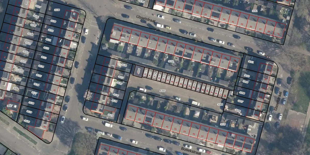 Het perceel waarop Botlekstraat 7 staat heeft een oppervlakte van 19 m². Dit is een klein perceel. De perceeloppervlakte wordt geregistreerd door het Kadaster. Gedetailleerde informatie over de maten van dit perceel kunt u vinden in het rapport Kadastrale kaart met maatvoering van Botlekstraat 7.