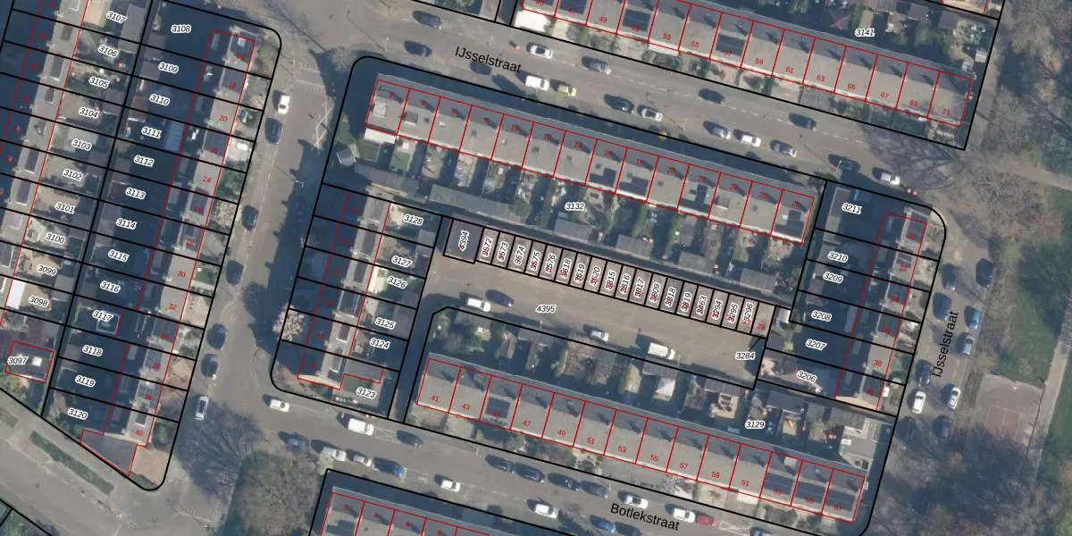 Het perceel waarop Botlekstraat 9 staat heeft een oppervlakte van 19 m². Dit is een klein perceel. De perceeloppervlakte wordt geregistreerd door het Kadaster. Gedetailleerde informatie over de maten van dit perceel kunt u vinden in het rapport Kadastrale kaart met maatvoering van Botlekstraat 9.