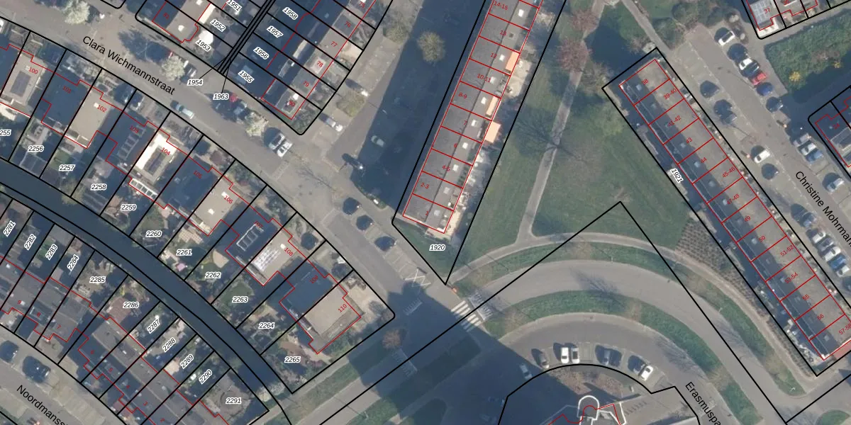 Clara Wichmannstraat 1 is gelegen op kadastraal perceel RDK01B1920. Deze kadastrale aanduiding is uniek en wordt gebruikt door het Kadaster om eigendomsrechten en andere zakelijke rechten vast te leggen. Het perceel maakt onderdeel uit van de kadastrale gemeente Ridderkerk.
