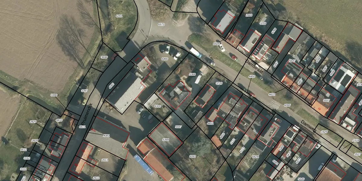 Het perceel waarop Damweg 8 staat heeft een oppervlakte van 596 m². Dit is een groot perceel. De perceeloppervlakte wordt geregistreerd door het Kadaster. Gedetailleerde informatie over de maten van dit perceel kunt u vinden in het rapport Kadastrale kaart met maatvoering van Damweg 8.