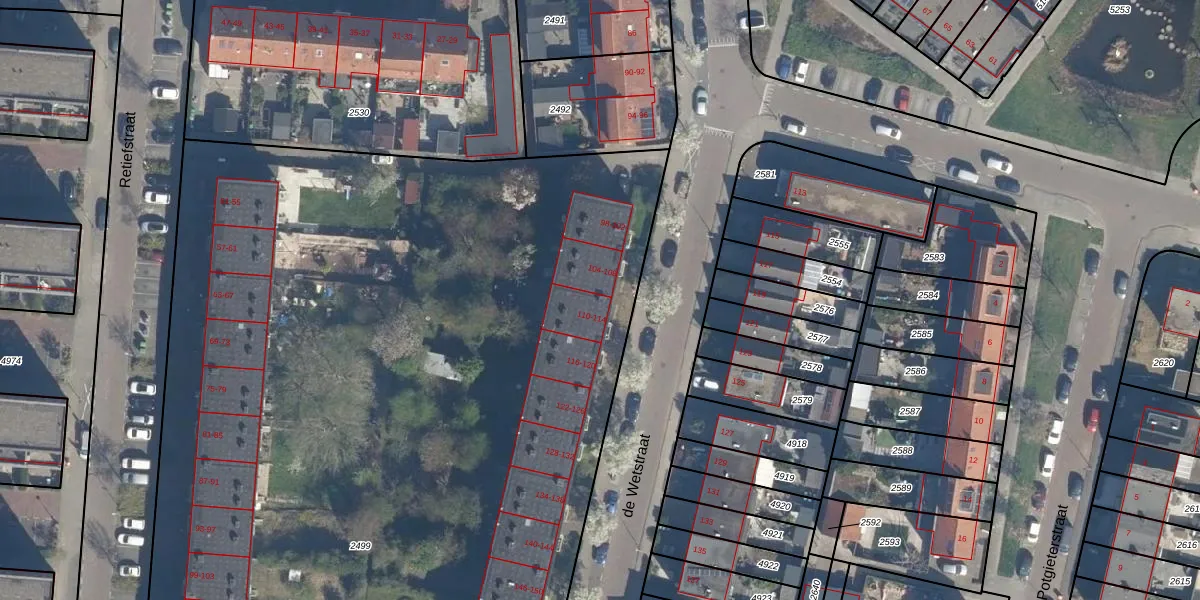 de Wetstraat 110 is gelegen op kadastraal perceel RDK01G2499. Deze kadastrale aanduiding is uniek en wordt gebruikt door het Kadaster om eigendomsrechten en andere zakelijke rechten vast te leggen. Het perceel maakt onderdeel uit van de kadastrale gemeente Ridderkerk.