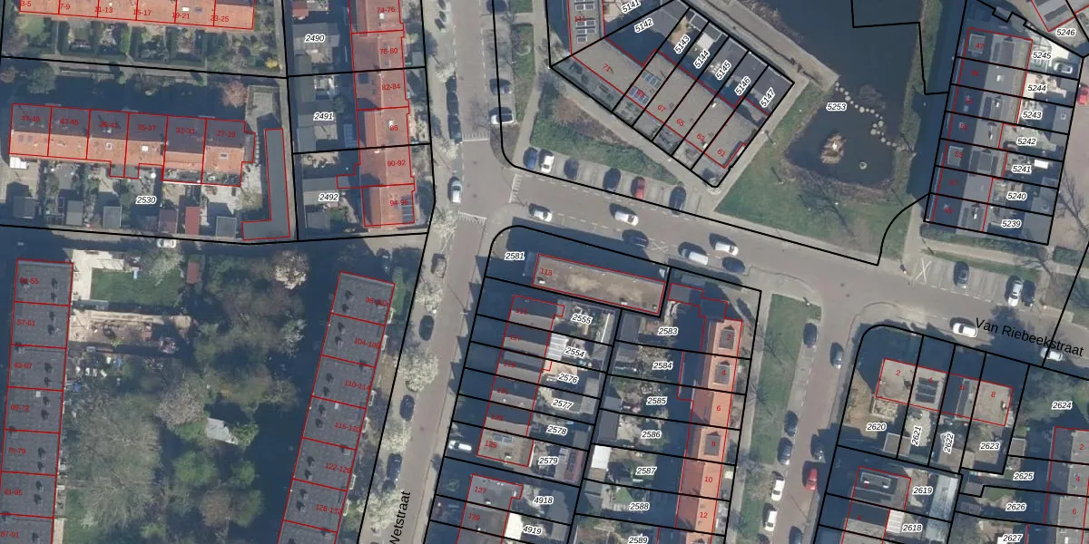Het adres is gelegen op perceel 2581 in de sectie G en de kadastrale gemeente Ridderkerk. De kadastrale aanduiding is aldus RDK01-G-2581. Het perceel is 326 m² groot. Dat is kleiner dan de gemiddelde perceeloppervlakte in Ridderkerk, dat op 1571,46 m² ligt. De grootste perceeloppervlakte in de kadastrale gemeente is 61,6 ha. De kleinste oppervlakte bedraagt 0 m². Op het perceel bevinden zich geen andere adressen. De laatste wijziging in het de Basisregistratie Kadaster (BRK) was op 07-05-2008.
