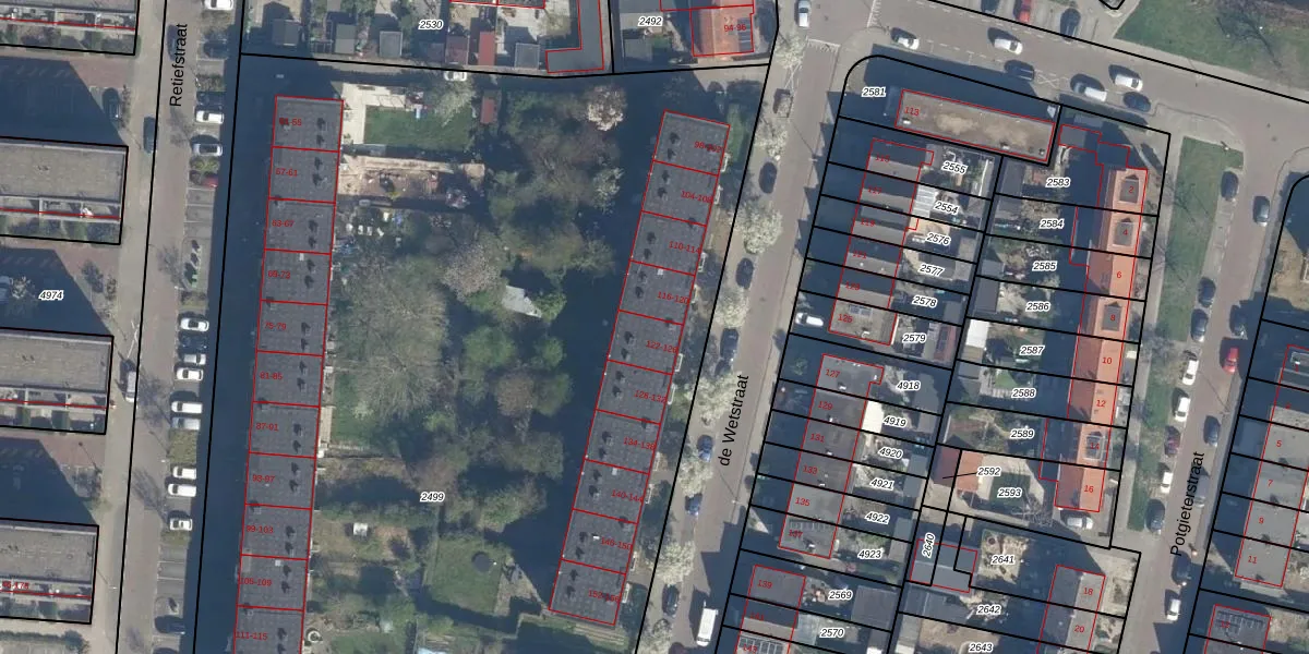 de Wetstraat 124 is gelegen op kadastraal perceel RDK01G2499. Deze kadastrale aanduiding is uniek en wordt gebruikt door het Kadaster om eigendomsrechten en andere zakelijke rechten vast te leggen. Het perceel maakt onderdeel uit van de kadastrale gemeente Ridderkerk.