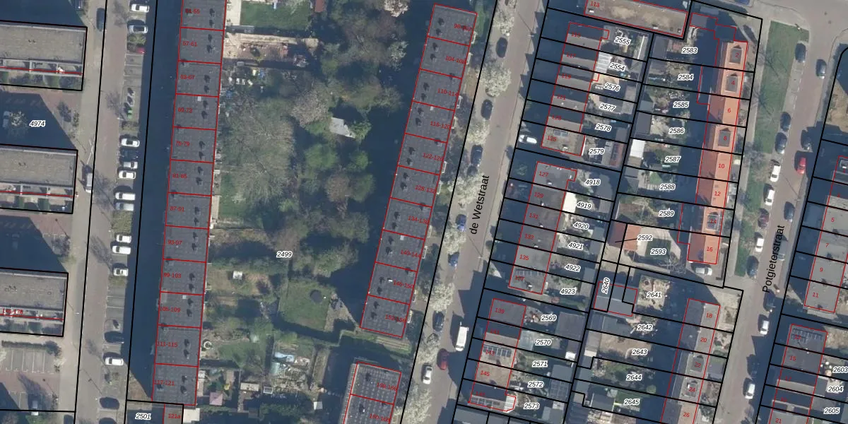 Het adres is gelegen op perceel 2499 in de sectie G en de kadastrale gemeente Ridderkerk. De kadastrale aanduiding is aldus RDK01-G-2499. De oppervlakte van het perceel is 9023 m². Dat is groter dan gemiddeld in Ridderkerk, waar de gemiddelde perceeloppervlakte op 1570,98 m² ligt. Het grootste perceel in de kadastrale gemeente is 61,6 ha. Het kleinste perceel heeft een oppervlakte van 0 m². Op het perceel zijn 86 adressen aanwezig. De huidige grenzen van het perceel zijn digitaal in de Basisregistratie Kadaster (BRK) geregistreerd op 07-05-2008.