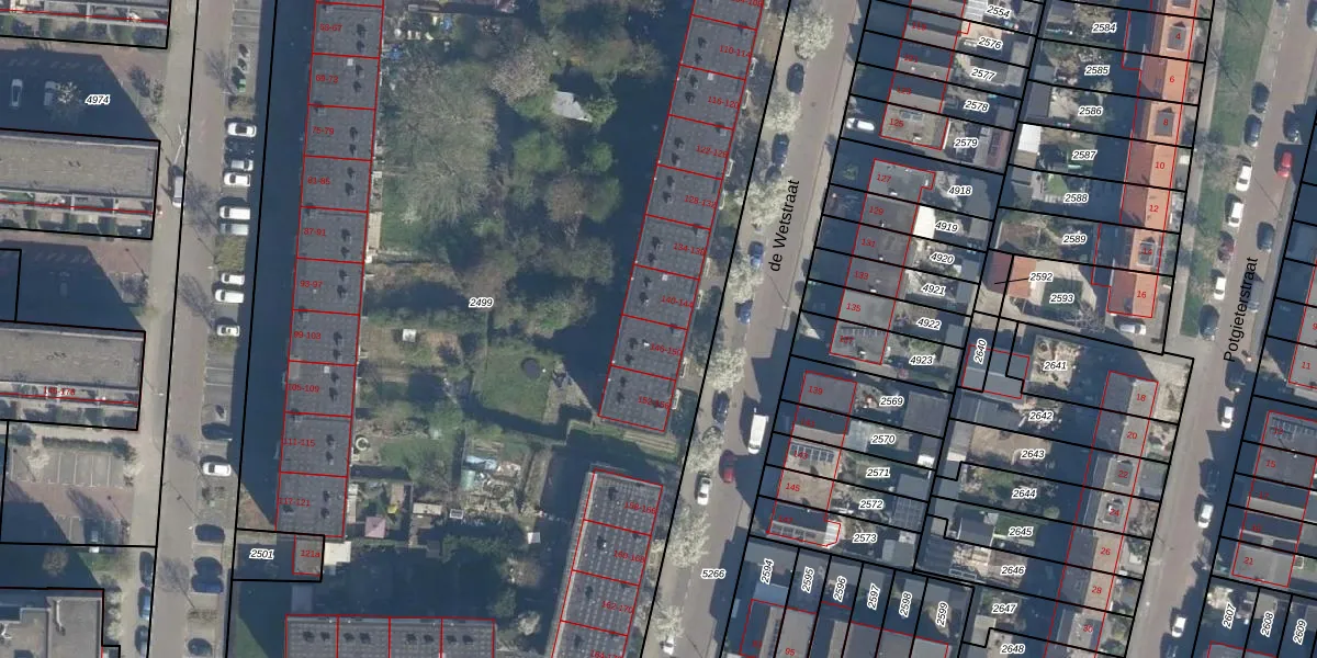 Het perceel waarop het adres ligt is RDK01-G-2499. De afkorting 'RDK01' staat voor kadastrale gemeente Ridderkerk. De gemiddelde perceeloppervlakte in de kadastrale gemeente Ridderkerk is 1571,27 m². Dit perceel is met zijn 9023 m² dus groter dan gemiddeld. De grootste perceeloppervlakte in de kadastrale gemeente is 61,6 ha. De kleinste oppervlakte bedraagt 0 m². Er zijn 86 adressen aanwezig op het perceel. De huidige grenzen van het perceel zijn digitaal in de Basisregistratie Kadaster (BRK) geregistreerd op 07-05-2008.