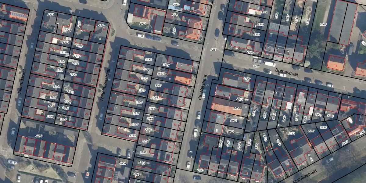 Gebruik de zoekbalk of klik op een perceel voor informatie over de adressen binnen dit perceel.