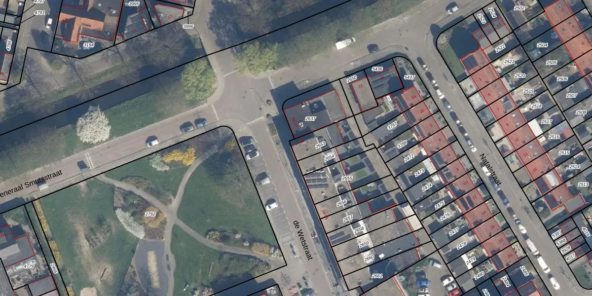 Het adres is gelegen op perceel 2653 in de sectie G en de kadastrale gemeente Ridderkerk. De kadastrale aanduiding is aldus RDK01-G-2653. Het perceel is kleiner dan gemiddeld in Ridderkerk. Het perceel is 175 m² groot, terwijl het gemiddelde ligt op 1571,46 m². Het kleinste perceel in de kadastrale gemeente is 0 m² groot. De grootste perceeloppervlakte is 61,6 ha. Er zijn 2 adressen aanwezig op het perceel. De huidige grenzen van het perceel zijn digitaal in de Basisregistratie Kadaster (BRK) geregistreerd op 07-05-2008.