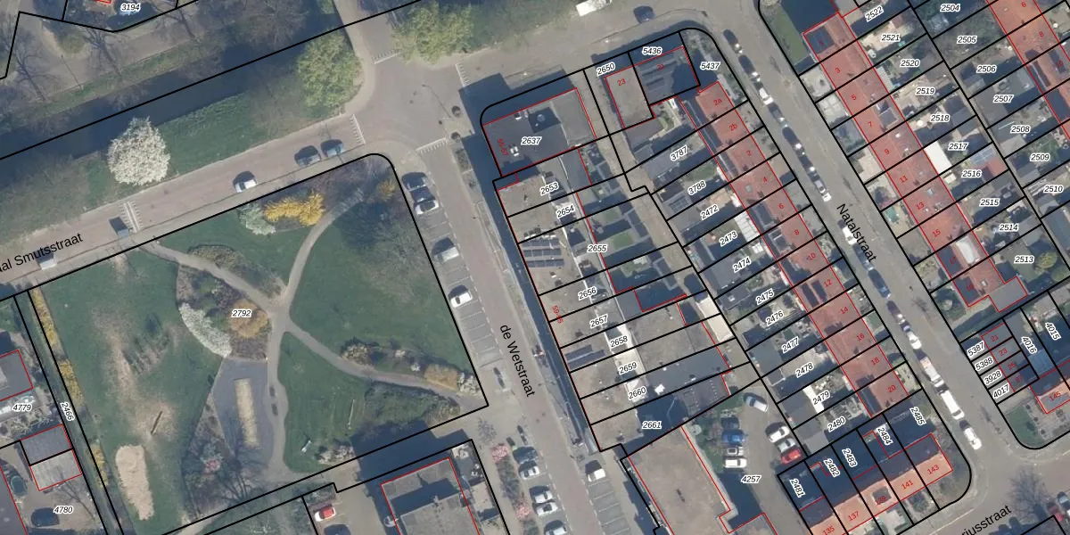 Het adres is gelegen op perceel 2655 in de sectie G en de kadastrale gemeente Ridderkerk. De kadastrale aanduiding is aldus RDK01-G-2655. Het perceel is kleiner dan gemiddeld in Ridderkerk. Het perceel is 285 m² groot, terwijl het gemiddelde ligt op 1571,46 m². Het kleinste perceel in de kadastrale gemeente is 0 m² groot. De grootste perceeloppervlakte is 61,6 ha. Op het perceel zijn 3 adressen aanwezig. De huidige grenzen van het perceel zijn digitaal in de Basisregistratie Kadaster (BRK) geregistreerd op 07-05-2008.
