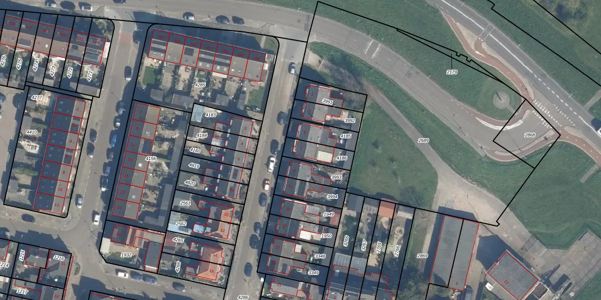 Gebruik de zoekbalk of klik op een perceel voor informatie over de adressen binnen dit perceel.