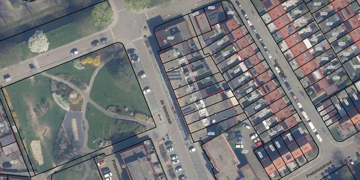 Het adres is gelegen op perceel 2656 in de sectie G en de kadastrale gemeente Ridderkerk. De kadastrale aanduiding is aldus RDK01-G-2656. Het perceel is kleiner dan gemiddeld in Ridderkerk. Het perceel is 149 m² groot, terwijl het gemiddelde ligt op 1571,46 m². Het kleinste perceel in de kadastrale gemeente is 0 m² groot. De grootste perceeloppervlakte is 61,6 ha. Op het perceel liggen in totaal 2 adressen. De huidige grenzen van het perceel zijn digitaal in de Basisregistratie Kadaster (BRK) geregistreerd op 07-05-2008.