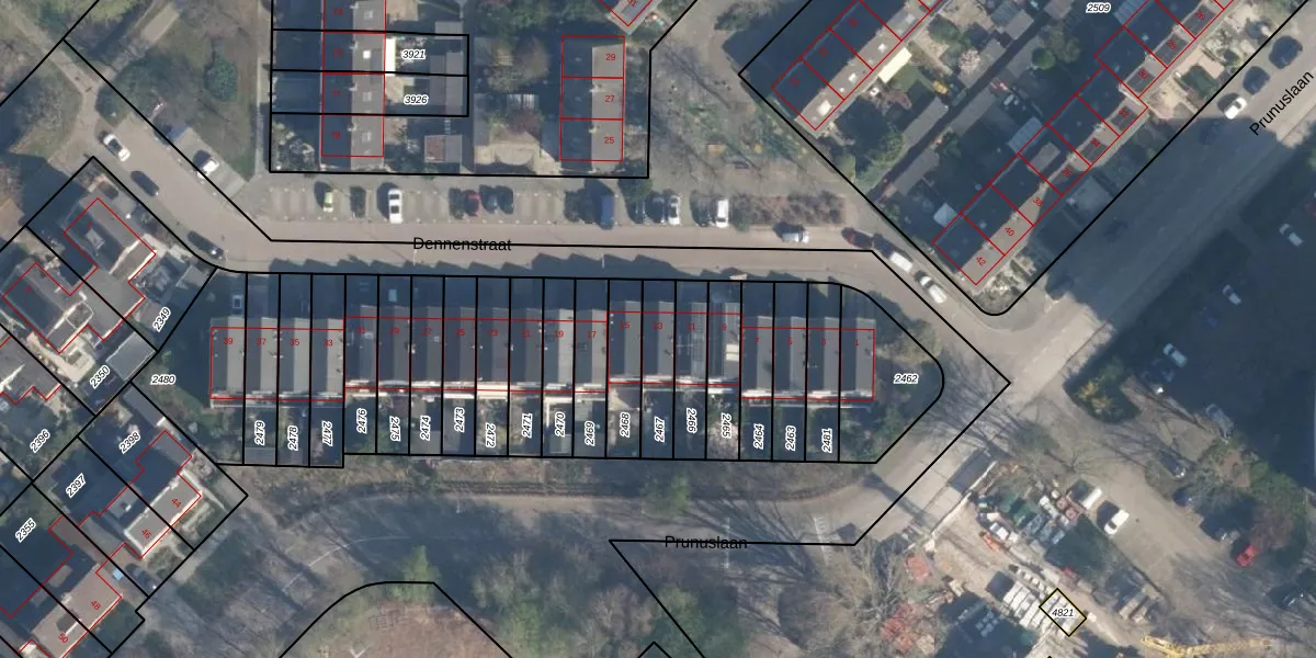 Dennenstraat 13 is gelegen op kadastraal perceel RDK01D2467. Deze kadastrale aanduiding is uniek en wordt gebruikt door het Kadaster om eigendomsrechten en andere zakelijke rechten vast te leggen. Het perceel maakt onderdeel uit van de kadastrale gemeente Ridderkerk.