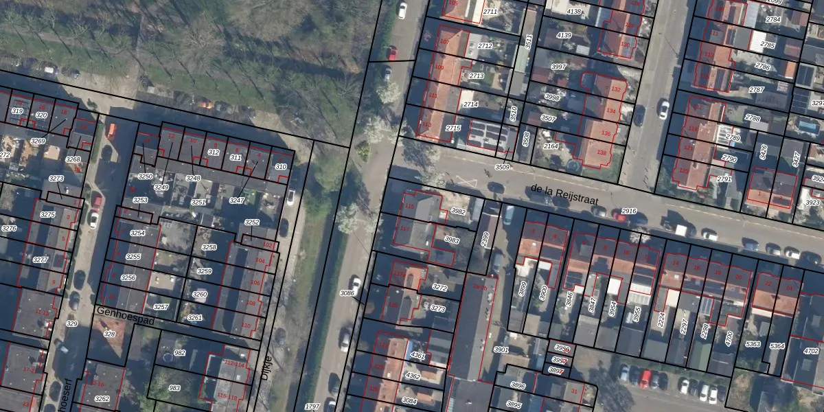 Gebruik de zoekbalk of klik op een perceel voor informatie over de adressen binnen dit perceel.