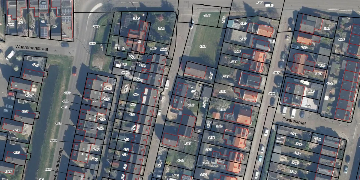 Gebruik de zoekbalk of klik op een perceel voor informatie over de adressen binnen dit perceel.