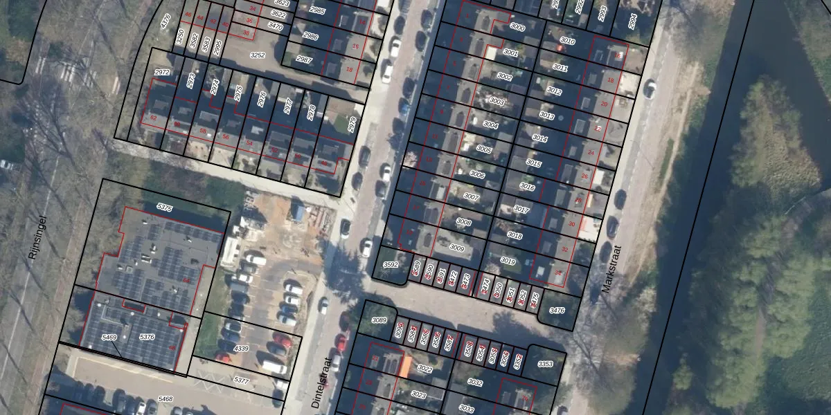 Dintelstraat 17 is gelegen op kadastraal perceel RDK01G3008. Deze kadastrale aanduiding is uniek en wordt gebruikt door het Kadaster om eigendomsrechten en andere zakelijke rechten vast te leggen. Het perceel maakt onderdeel uit van de kadastrale gemeente Ridderkerk.