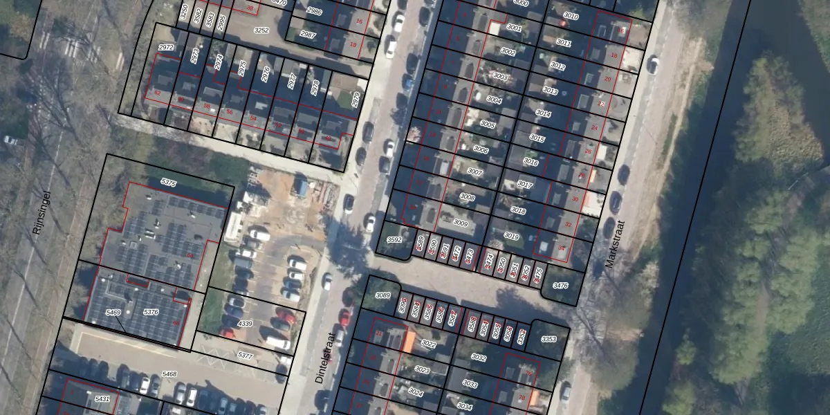 Dintelstraat 19 is gelegen op kadastraal perceel RDK01G3009. Deze kadastrale aanduiding is uniek en wordt gebruikt door het Kadaster om eigendomsrechten en andere zakelijke rechten vast te leggen. Het perceel maakt onderdeel uit van de kadastrale gemeente Ridderkerk.