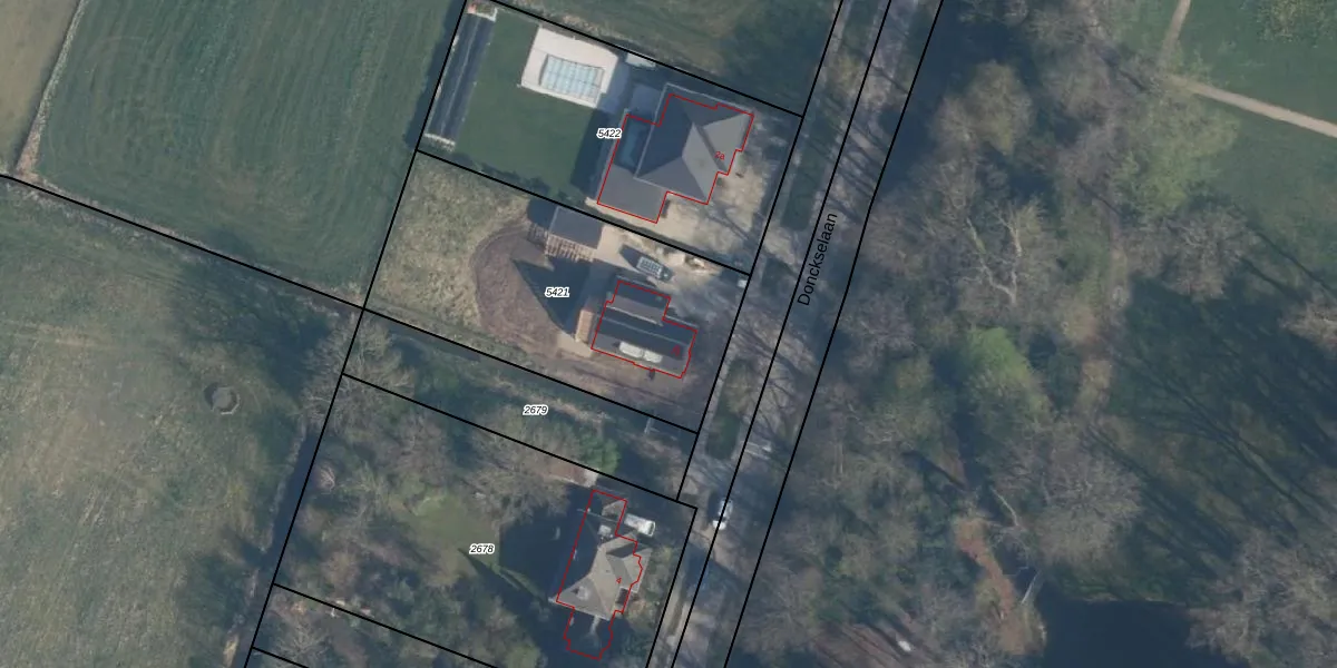Het perceel waarop Donckselaan 2-b staat heeft een oppervlakte van 1335 m². Dit is een zeer groot perceel. De perceeloppervlakte wordt geregistreerd door het Kadaster. Gedetailleerde informatie over de maten van dit perceel kunt u vinden in het rapport Kadastrale kaart met maatvoering van Donckselaan 2-b.