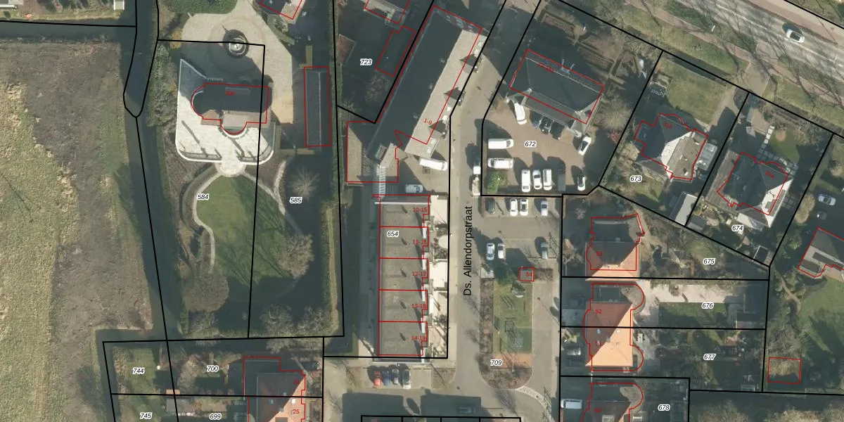 Het perceel waarop Ds. Allendorpstraat 10 staat heeft een oppervlakte van 2110 m². Dit is een zeer groot perceel. De perceeloppervlakte wordt geregistreerd door het Kadaster. Gedetailleerde informatie over de maten van dit perceel kunt u vinden in het rapport Kadastrale kaart met maatvoering van Ds. Allendorpstraat 10.