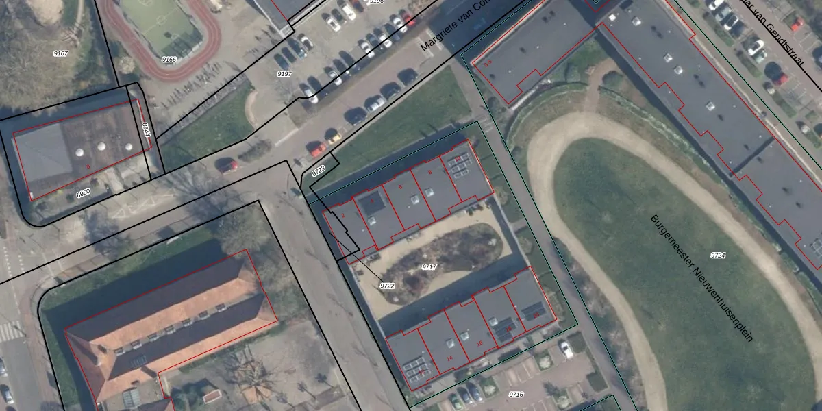 Het perceel waarop het adres ligt is RDK01-A-9717. De afkorting 'RDK01' staat voor kadastrale gemeente Ridderkerk. Het perceel is met 2454 m² relatief groot. Het gemiddelde ligt in de kadastrale gemeente Ridderkerk op 1570,98 m². De grootste perceeloppervlakte in de kadastrale gemeente is 61,6 ha. De kleinste oppervlakte bedraagt 0 m². Op het perceel liggen in totaal 10 adressen. In de Basisregistratie Kadaster (BRK) werden de grenzen van het perceel geregistreerd op 10-02-2021.