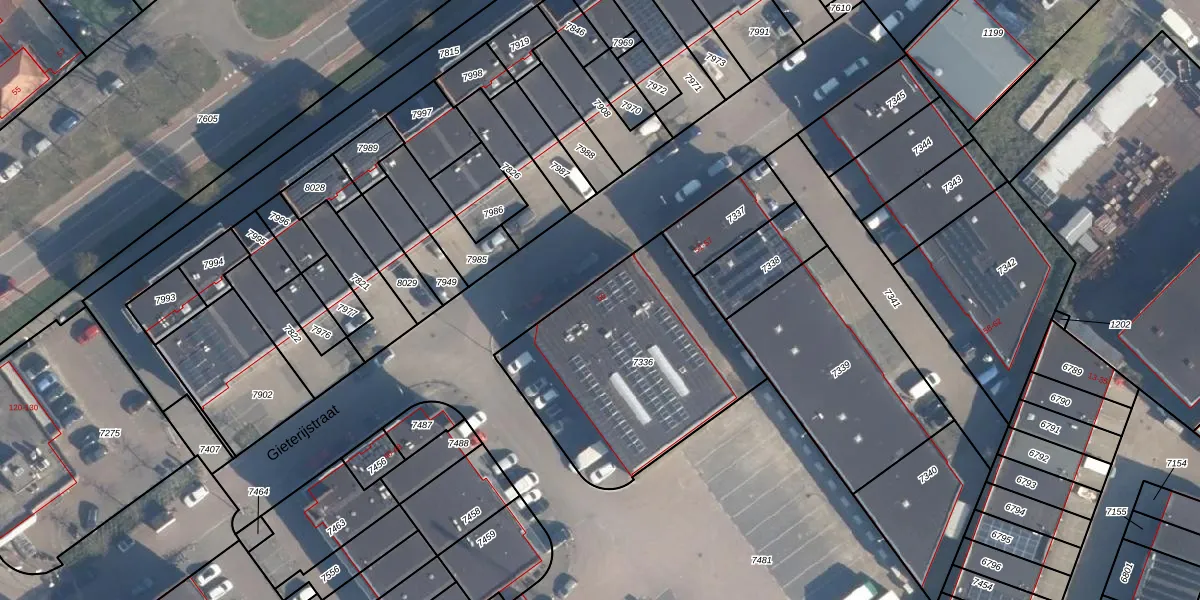 Het perceel waarop Gieterijstraat 50 staat heeft een oppervlakte van 1038 m². Dit is een zeer groot perceel. De perceeloppervlakte wordt geregistreerd door het Kadaster. Gedetailleerde informatie over de maten van dit perceel kunt u vinden in het rapport Kadastrale kaart met maatvoering van Gieterijstraat 50.