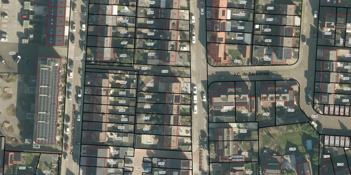 Govert Flohilstraat 13 is gelegen op kadastraal perceel RDK01C5129. Deze kadastrale aanduiding is uniek en wordt gebruikt door het Kadaster om eigendomsrechten en andere zakelijke rechten vast te leggen. Het perceel maakt onderdeel uit van de kadastrale gemeente Ridderkerk.