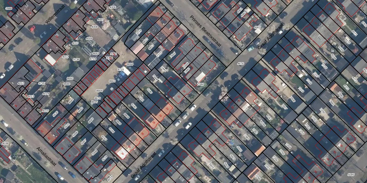 Het perceel waarop Graaf Adolfstraat 20 staat heeft een oppervlakte van 178 m². Dit is een middelgroot perceel. De perceeloppervlakte wordt geregistreerd door het Kadaster. Gedetailleerde informatie over de maten van dit perceel kunt u vinden in het rapport Kadastrale kaart met maatvoering van Graaf Adolfstraat 20.
