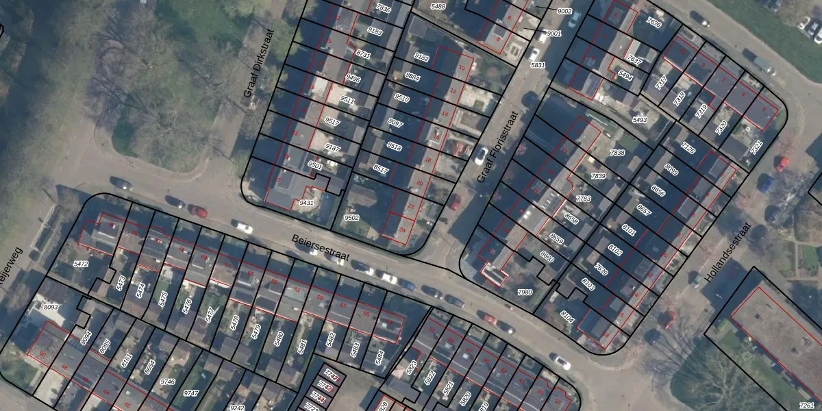 Het perceel waarop Graaf Florisstraat 22 staat heeft een oppervlakte van 344 m². Dit is een groot perceel. De perceeloppervlakte wordt geregistreerd door het Kadaster. Gedetailleerde informatie over de maten van dit perceel kunt u vinden in het rapport Kadastrale kaart met maatvoering van Graaf Florisstraat 22.
