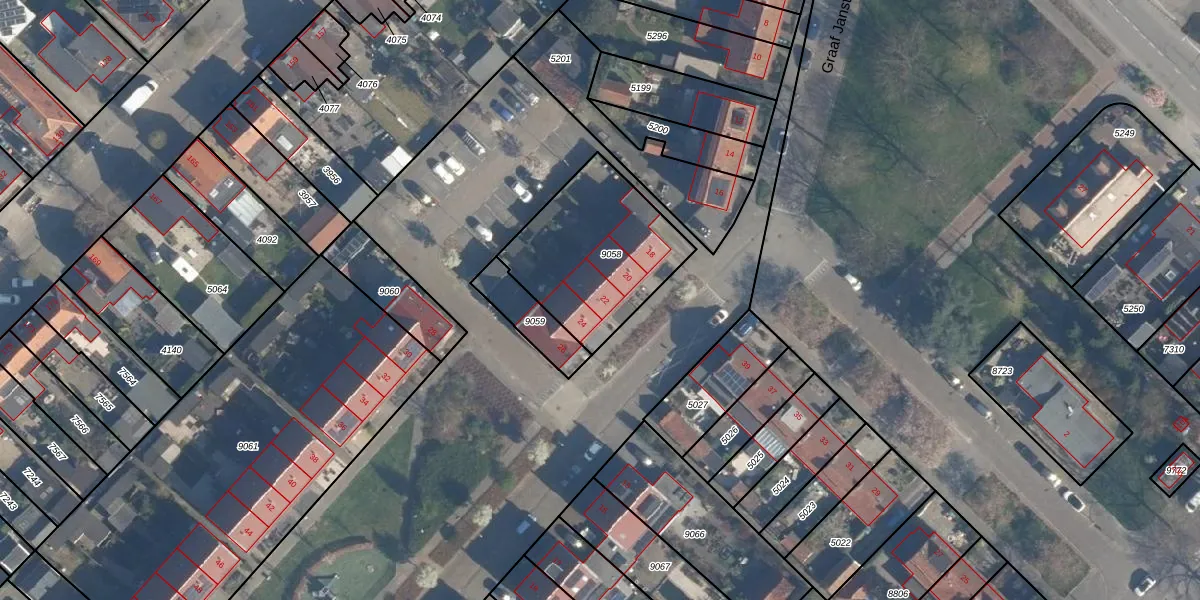 Graaf Janstraat 22 is gelegen op kadastraal perceel RDK01A9058. Deze kadastrale aanduiding is uniek en wordt gebruikt door het Kadaster om eigendomsrechten en andere zakelijke rechten vast te leggen. Het perceel maakt onderdeel uit van de kadastrale gemeente Ridderkerk.