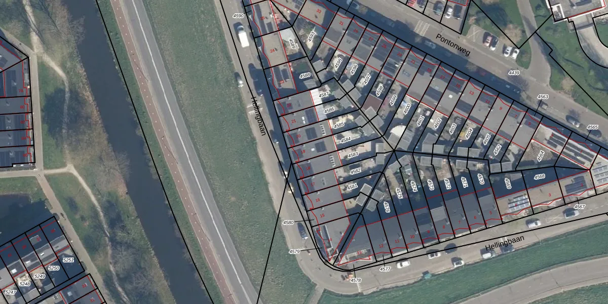 Hellingbaan 19 is gelegen op kadastraal perceel RDK01G4584. Deze kadastrale aanduiding is uniek en wordt gebruikt door het Kadaster om eigendomsrechten en andere zakelijke rechten vast te leggen. Het perceel maakt onderdeel uit van de kadastrale gemeente Ridderkerk.