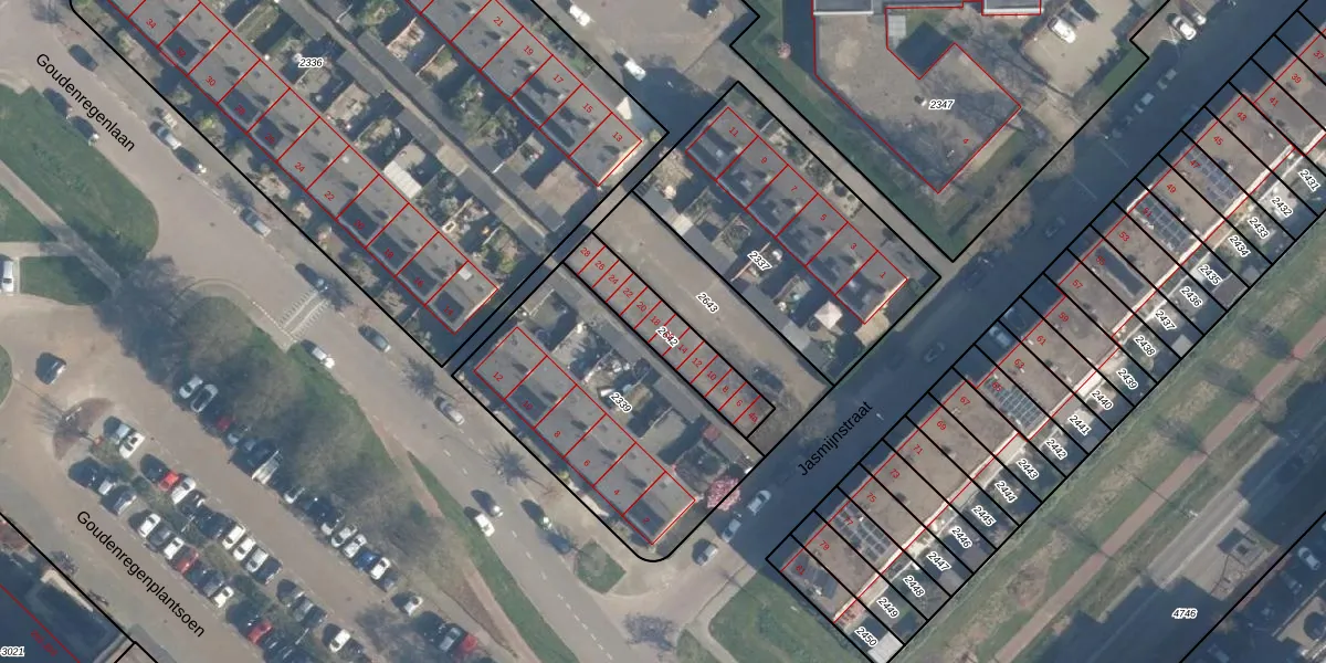 Het perceel waarop Jasmijnstraat 16 staat heeft een oppervlakte van 243 m². Dit is een middelgroot perceel. De perceeloppervlakte wordt geregistreerd door het Kadaster. Gedetailleerde informatie over de maten van dit perceel kunt u vinden in het rapport Kadastrale kaart met maatvoering van Jasmijnstraat 16.