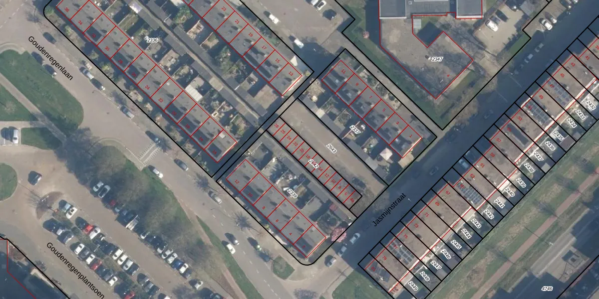 Het perceel waarop Jasmijnstraat 20 staat heeft een oppervlakte van 243 m². Dit is een middelgroot perceel. De perceeloppervlakte wordt geregistreerd door het Kadaster. Gedetailleerde informatie over de maten van dit perceel kunt u vinden in het rapport Kadastrale kaart met maatvoering van Jasmijnstraat 20.