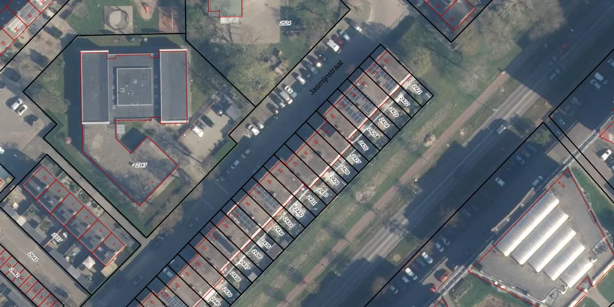 Het perceel waarop Jasmijnstraat 39 staat heeft een oppervlakte van 119 m². Dit is een middelgroot perceel. De perceeloppervlakte wordt geregistreerd door het Kadaster. Gedetailleerde informatie over de maten van dit perceel kunt u vinden in het rapport Kadastrale kaart met maatvoering van Jasmijnstraat 39.