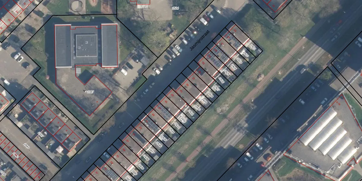 Jasmijnstraat 41 is gelegen op kadastraal perceel RDK01D2430. Deze kadastrale aanduiding is uniek en wordt gebruikt door het Kadaster om eigendomsrechten en andere zakelijke rechten vast te leggen. Het perceel maakt onderdeel uit van de kadastrale gemeente Ridderkerk.