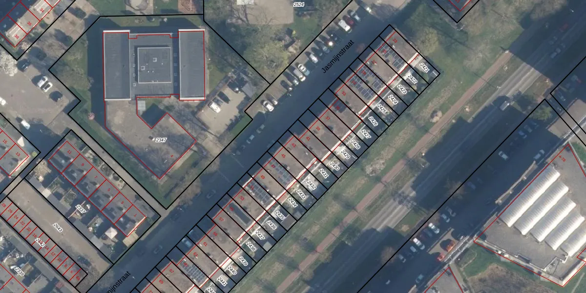 Het perceel waarop Jasmijnstraat 43 staat heeft een oppervlakte van 121 m². Dit is een middelgroot perceel. De perceeloppervlakte wordt geregistreerd door het Kadaster. Gedetailleerde informatie over de maten van dit perceel kunt u vinden in het rapport Kadastrale kaart met maatvoering van Jasmijnstraat 43.