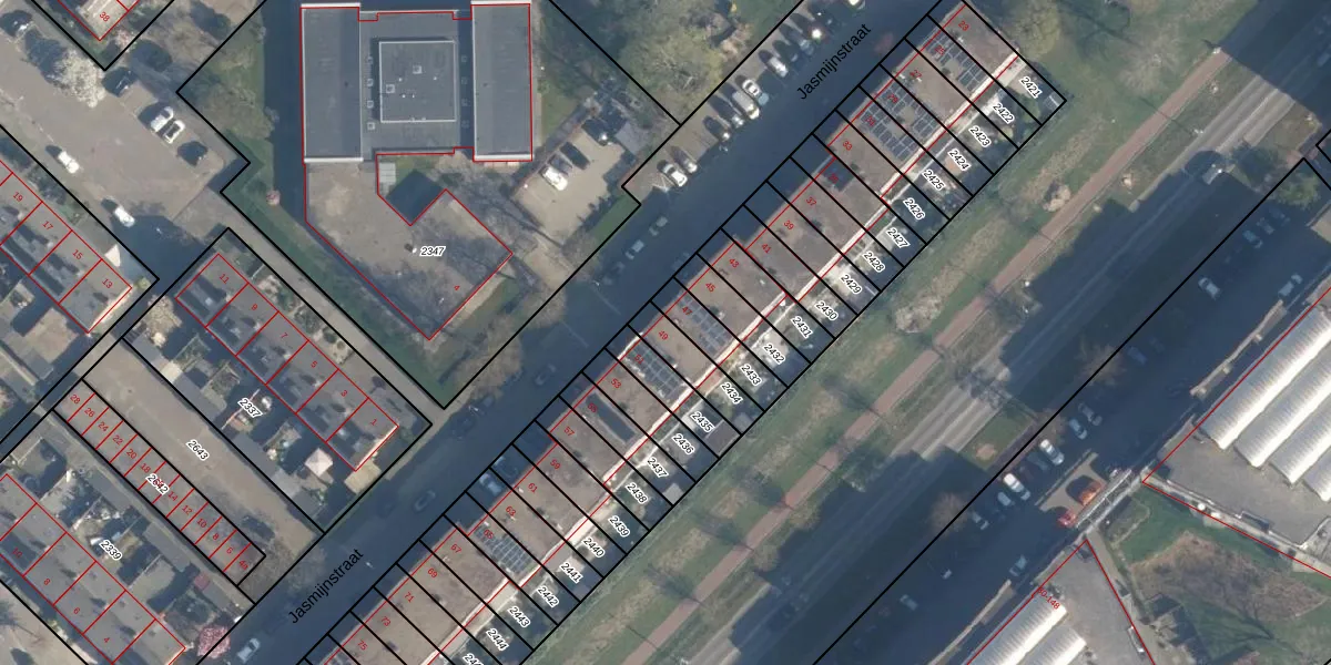 Gebruik de zoekbalk of klik op een perceel voor informatie over de adressen binnen dit perceel.