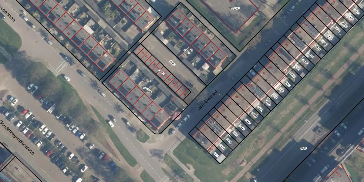Het perceel waarop Jasmijnstraat 6 staat heeft een oppervlakte van 243 m². Dit is een middelgroot perceel. De perceeloppervlakte wordt geregistreerd door het Kadaster. Gedetailleerde informatie over de maten van dit perceel kunt u vinden in het rapport Kadastrale kaart met maatvoering van Jasmijnstraat 6.