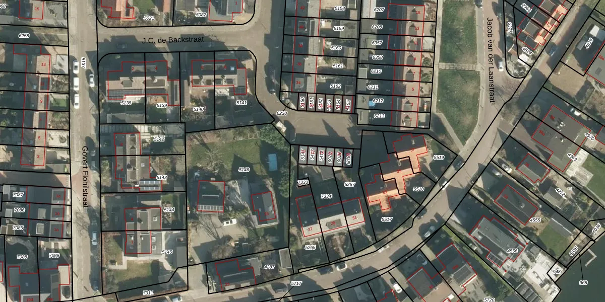 Het perceel waarop J.C. de Backstraat 10 staat heeft een oppervlakte van 19 m². Dit is een klein perceel. De perceeloppervlakte wordt geregistreerd door het Kadaster. Gedetailleerde informatie over de maten van dit perceel kunt u vinden in het rapport Kadastrale kaart met maatvoering van J.C. de Backstraat 10.