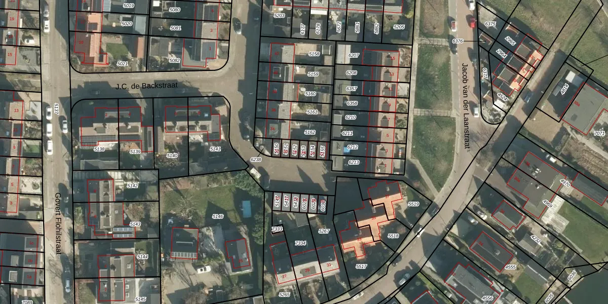 Het perceel waarop J.C. de Backstraat 26 staat heeft een oppervlakte van 18 m². Dit is een klein perceel. De perceeloppervlakte wordt geregistreerd door het Kadaster. Gedetailleerde informatie over de maten van dit perceel kunt u vinden in het rapport Kadastrale kaart met maatvoering van J.C. de Backstraat 26.
