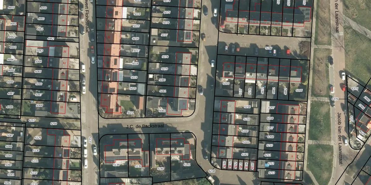 Het perceel waarop J.C. de Backstraat 3 staat heeft een oppervlakte van 164 m². Dit is een middelgroot perceel. De perceeloppervlakte wordt geregistreerd door het Kadaster. Gedetailleerde informatie over de maten van dit perceel kunt u vinden in het rapport Kadastrale kaart met maatvoering van J.C. de Backstraat 3.